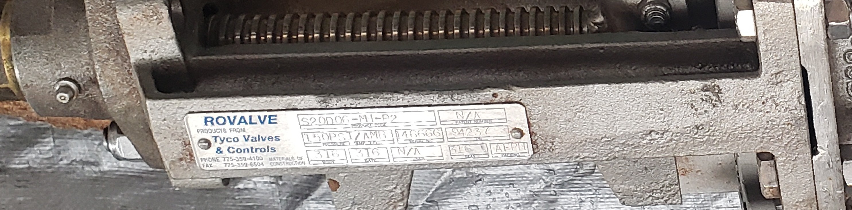 Unused Condition Rovalve 6″-150# stainless steel knife gate valve, hand wheel operated