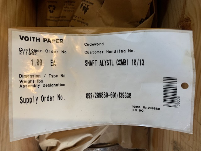 Description: Manufacture: Jeffrey Rader Job No. PM10-6697 Model: 45x45 ESW S/N:..18″ x 44″ CF Drum Shaft BR