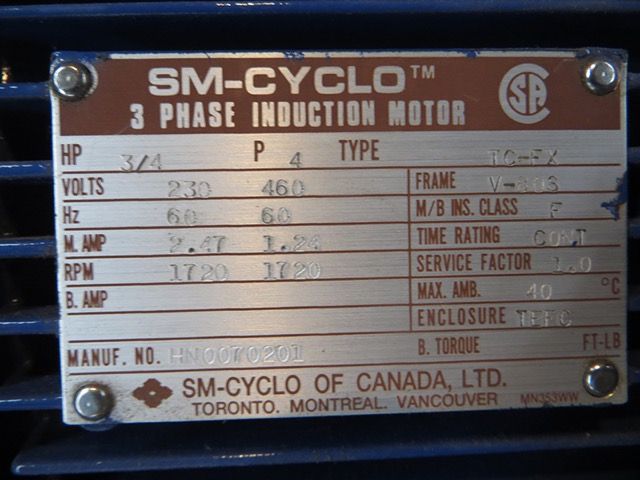 - Motor HP: 3/4