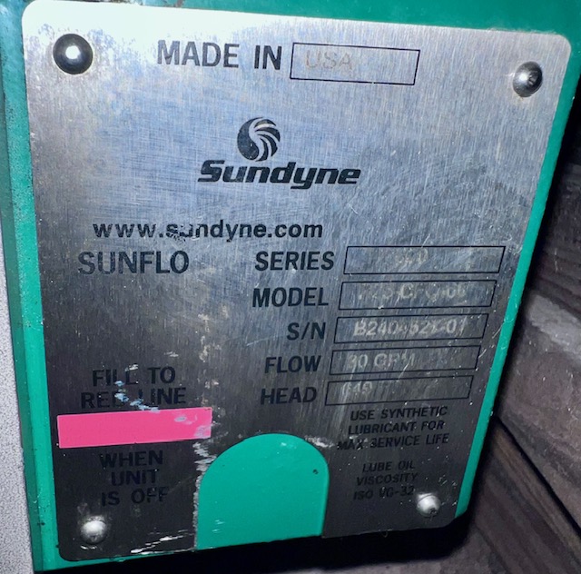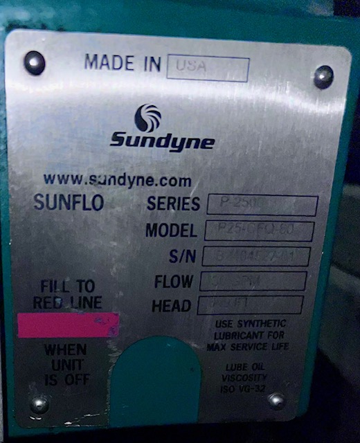 New Storeroom Spare Sundyne pump Model P25-CFQ-60, series P-2500, Made in USA