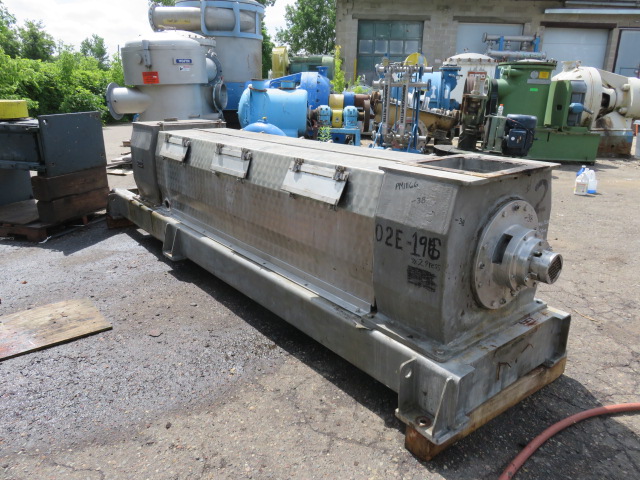 Thune Eureka dewatering screw press model SP-32L, material 316 stainless, made in Norway.With Reliance Electric 75hp, 1780rpm, TEFC, 460v, AC Motor; and Falk Gear Reducer M1160DHC2AN-22.51; Ratio 22.51