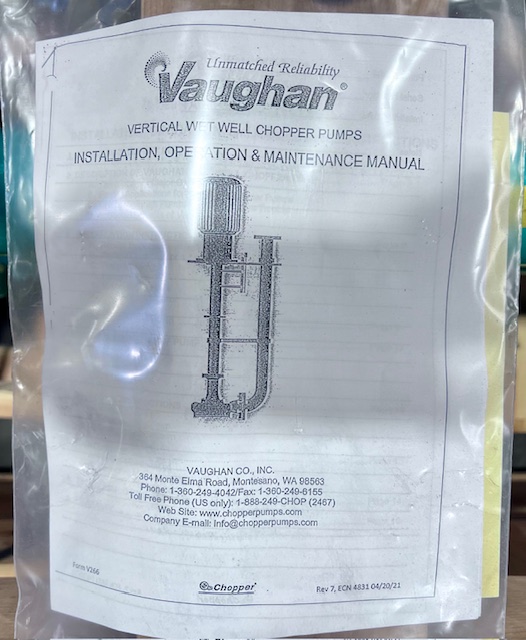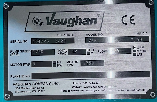 New Storeroom Spare Vaughan V3F Vertical Chopper Pump