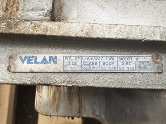 Velan 10″-150 knife gate valve, hand wheel operated, 316ss material, used condition