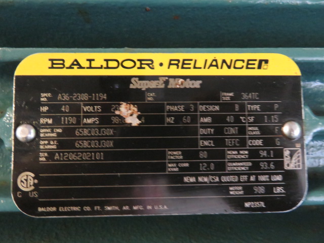 New surplus Venderflex VF1`25 peristaltic hose pump, with Baldor 40hp, 230/460v, frame 364TC AC motor and Bonfiglioli Gear Reducer ratio 62.6