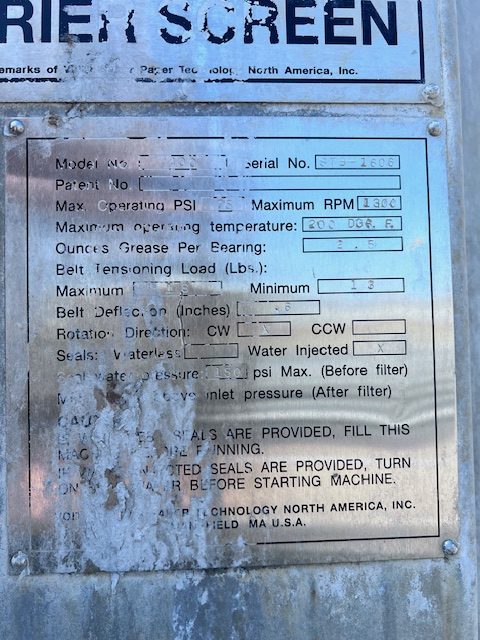 Description: Manufacture: Voith/Sulzer Model: AF VPS 20 Material: 316ss Made in..Kadant Black Clawson Model 24PSPH Pressure Screen