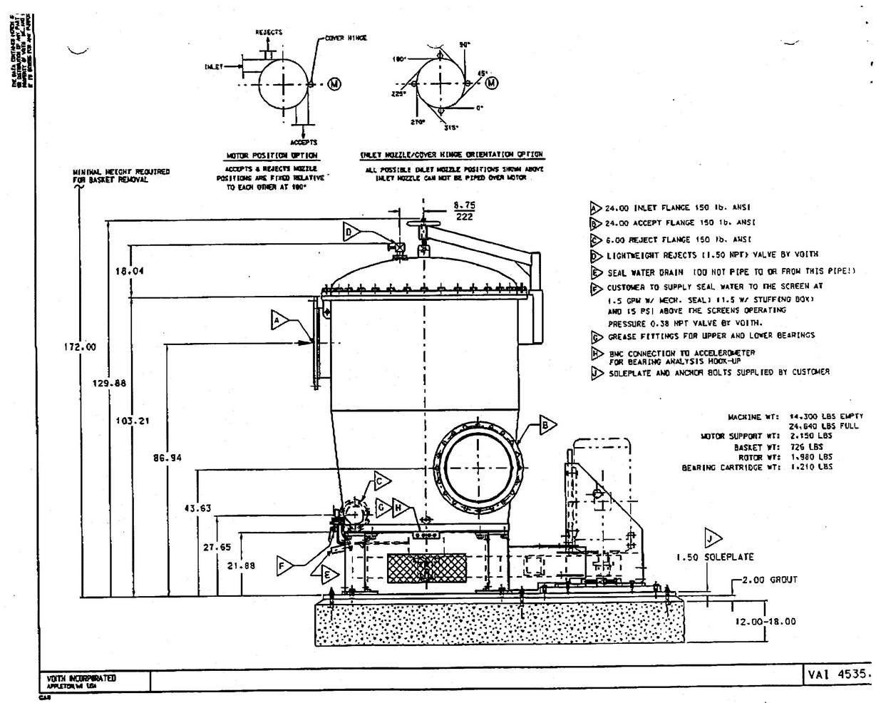 Voith Sulzer VPS35 pressure screen, stainless steel; manufactured in 2000