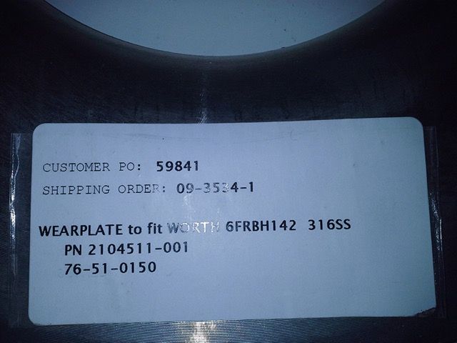 Wearplate to fit Worthington pump model 6FRBH-142, new surplus, 316ss