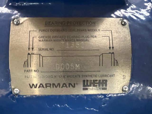 Description: Manufacture: Warman Model: 086EAHCCCPW8808 Size: 6x8 Serial Number: MDS48390-M HP: 50