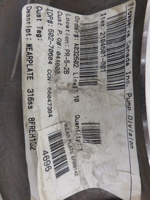 Wearplate for Worthington pump model 8FRBH-152, new surplus, 316ss