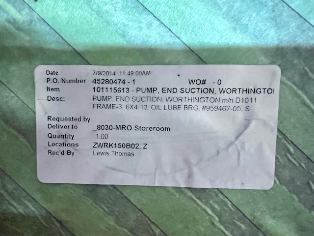 Worthington D1011 6x4x13 pump, frame 3, Mechanical Seal
