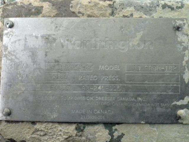 Worthington pump model 10FRBH-182, material 316ss, used condition