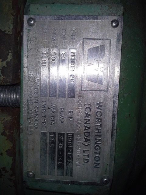 Worthington pump model 3FRBH-141, material 316ss, suggested motor 20 hp, used condition
