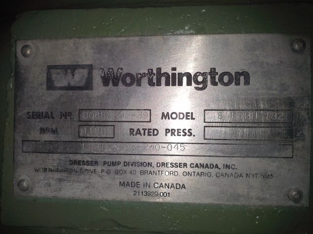 Worthington pump model 8FRBH-182 size 8x10x18, material 316ss.
