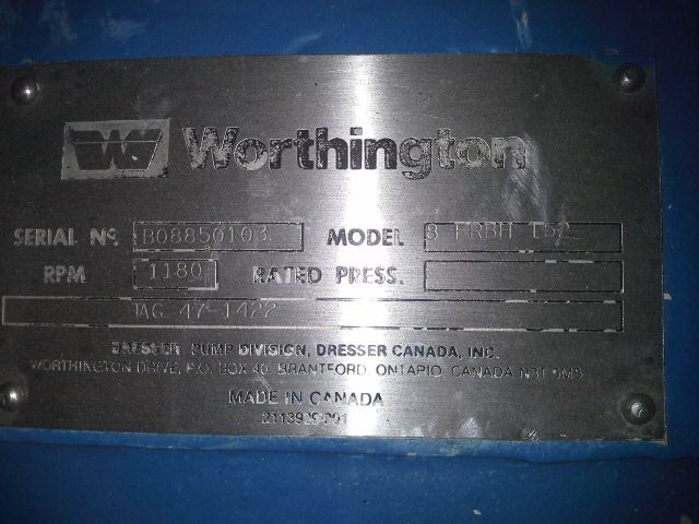 Worthington pump model 8FRBH-152, used, 316ss
